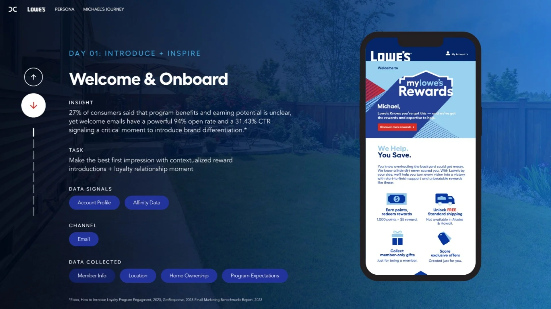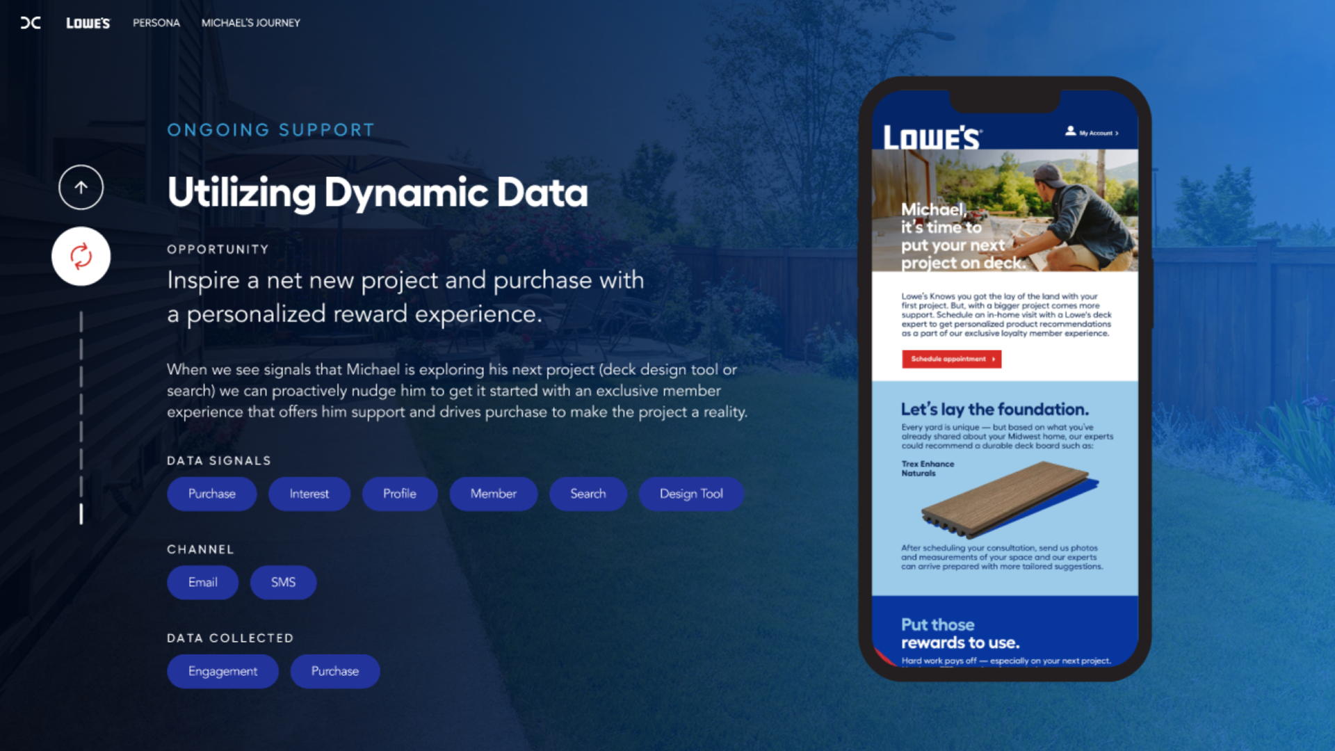 In addition to our creative pitch, Lowe’s asked us to reimagine the Loyalty program consumer journey with engaging experiences from the moment they sign up to the minute they finish their first project.