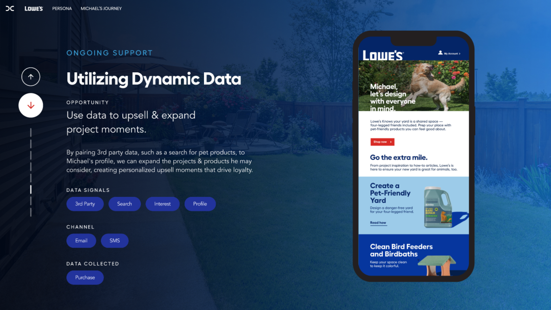 Leveraging UX best practices, I crafted copy that supported users while directing them to the right resources to complete their project (and purchase from Lowe’s). Each touchpoint allowed us to collect additional user data to make the next one even more personalized.